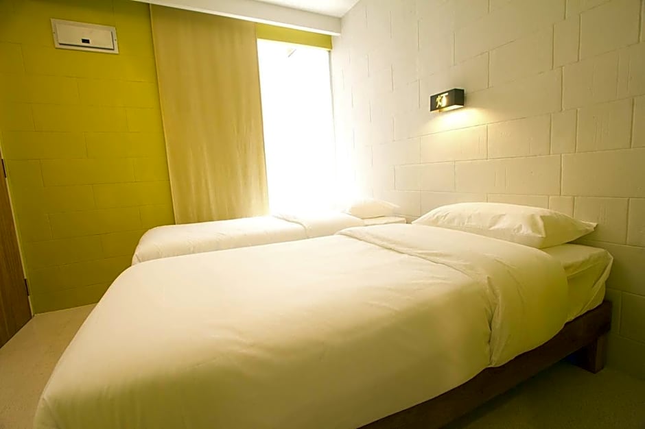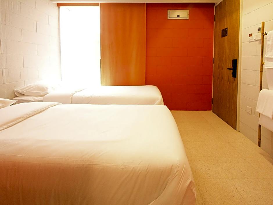 Modern rooms feature air conditioning, 2 single beds and a window overlooking the hotel's indoor courtyard. The private bathroom has hot/cold shower facility, towels and free toiletries.